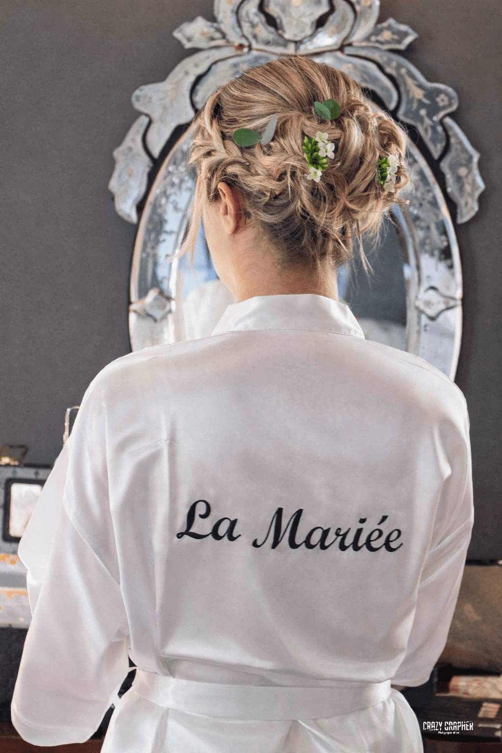 Il peut également être assorti aux peignoirs des demoiselles d’honneur et témoins, pour une harmonie parfaite lors des préparatifs.